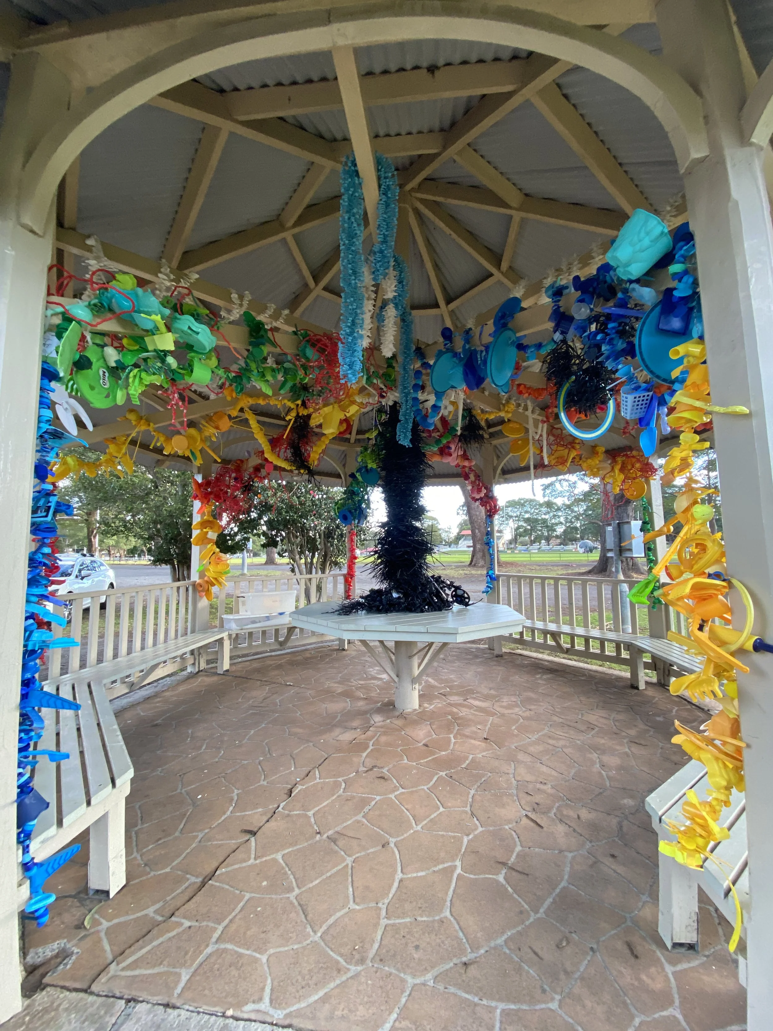 This was followed by an installation for OpenField in June 2025 where the Rotunda at the Berry Showgrounds was adorned with found coastal and industrial waste plastics. The inaugural Satellite Projects exhibition Changing Currents at T3 Collingwood, Naarm features three works.